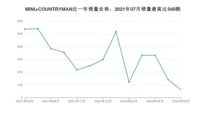 2022年6月,MINI COUNTRYMAN销量为59辆,同比下降89.01%,环比下降58.16%。2021年06月-2022年06月份,MINI COUNTRYMAN销量为4082辆,同比下降19.63%。