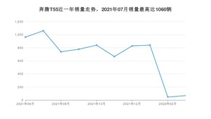 2022年6月,奔腾T55销量为68辆,同比下降92.94%,2021年06月-2022年06月份,奔腾T55销量为6830辆,同比增长147.82%。