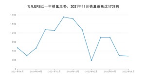 2022年6月,飞凡ER6销量为426辆,同比下降39.32%,环比下降4.27%。2021年06月-2022年06月份,飞凡ER6销量为12398辆,同比增长146.87%。