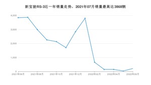 2022年6月,新宝骏RS-3销量为212辆,同比下降94.48%,环比增长488.89%。2021年06月-2022年06月份,新宝骏RS-3销量为24632辆,同比下降53.79%。