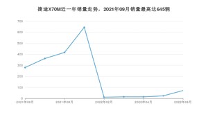 2022年6月,捷途品牌总体销量达到3811辆,其中捷途X70M销量达到71辆,占品牌总销量的1.86%。
