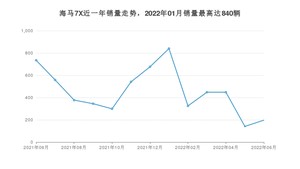 2022年6月,海马7X销量为197辆,同比下降73.2%,环比增长39.72%。2021年06月-2022年06月份,海马7X销量为5930辆,同比增长36.2%。