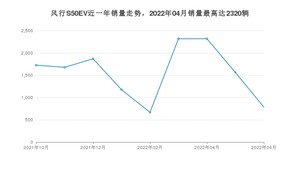 2022年6月,风行S50EV销量为785辆,环比下降49.78%。2021年06月-2022年06月份,风行S50EV销量为14109辆,