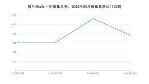 2022年6月,枫叶60s销量为761辆,环比下降32.36%。2021年06月-2022年06月份,枫叶60s销量为3118辆,