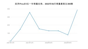 2022年6月,炫界Pro EV销量为390辆,环比增长400%。2021年06月-2022年06月份,炫界Pro EV销量为1384辆,