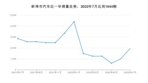 2022年7月,蚌埠市汽车总销量为1944辆,同比下降31.79%,环比增长93.05%。2021年07月-2022年07月份,蚌埠市总销量为28220辆,同比下降28.03%。在最近1年中,蚌埠市销量在2022年01月达到最高,销量为4397辆。