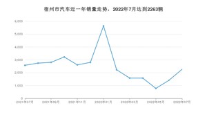 2022年7月,宿州市汽车总销量为2263辆,同比下降12.08%,环比增长60.5%。2021年07月-2022年07月份,宿州市总销量为32238辆,同比下降21.84%。在最近1年中,宿州市销量在2022年01月达到最高,销量为5639辆。