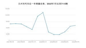 2022年7月,兰州市汽车总销量为7115辆,同比下降9.09%,环比增长6.69%。2021年07月-2022年07月份,兰州市总销量为87063辆,同比下降22.54%。在最近1年中,兰州市销量在2022年01月达到最高,销量为13197辆。