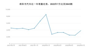 2022年7月,绵阳市汽车总销量为3845辆,同比下降15.79%,环比增长55.67%。2021年07月-2022年07月份,绵阳市总销量为55385辆,同比下降14.71%。在最近1年中,绵阳市销量在2022年01月达到最高,销量为8525辆。