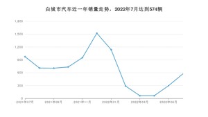 2022年7月,白城市汽车总销量为574辆,同比下降41.01%,环比增长93.27%。2021年07月-2022年07月份,白城市总销量为8013辆,同比下降27.43%。在最近1年中,白城市销量在2021年12月达到最高,销量为1522辆。