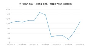 2022年7月,忻州市汽车总销量为1330辆,同比增长4.56%,环比增长91.92%。2021年07月-2022年07月份,忻州市总销量为13894辆,同比下降28.64%。在最近1年中,忻州市销量在2021年12月达到最高,销量为1900辆。