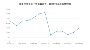 2022年7月,湘潭市汽车总销量为1500辆,同比下降31.41%,环比增长48.81%。2021年07月-2022年07月份,湘潭市总销量为23466辆,同比下降27.2%。在最近1年中,湘潭市销量在2022年01月达到最高,销量为3141辆。