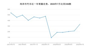 2022年7月,鸡西市汽车总销量为336辆,同比下降37.2%,环比增长57.75%。2021年07月-2022年07月份,鸡西市总销量为4494辆,同比下降29.02%。在最近1年中,鸡西市销量在2021年07月达到最高,销量为535辆。