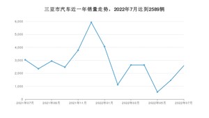 2022年7月,三亚市汽车总销量为2589辆,同比下降14.84%,环比增长78.8%。2021年07月-2022年07月份,三亚市总销量为35585辆,同比下降1.09%。在最近1年中,三亚市销量在2021年12月达到最高,销量为5932辆。