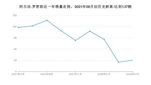 在SUV方面,7月阿尔法·罗密欧的销量为13辆,同比下降53.57%,2021年07月-2022年07月份累计销量为286辆,较去年同期下降47.52%。