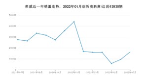 在国内市场上,荣威在2022年7月的销量为16340辆,同比下降40.65%,环比增长72.11%。2021年07月-2022年07月份,荣威累计销量为306396辆,较去年同期下降27.11%。