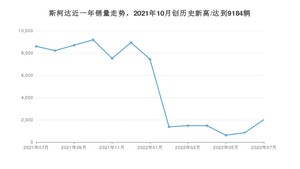 斯柯达 7月份销量数据发布 同比下降76.58%(2022年)