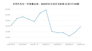 在国内市场上,吉利汽车在2022年7月的销量为58712辆,同比下降5.43%,环比增长54.2%。2021年07月-2022年07月份,吉利汽车累计销量为862126辆,较去年同期增长0.53%。