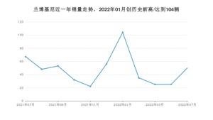 2022年7月,全国汽车总销量为1574795辆,兰博基尼品牌的销量占比为0%,在所有汽车企业销量排名中位列第101名。2021年07月-2022年07月份,全国汽车总销量为19291778辆,兰博基尼品牌的销量占比为0%,在所有汽车企业销量排名中位列第119名。