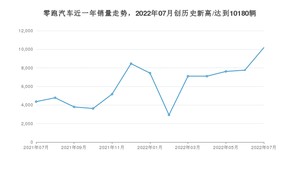 在国内市场上,零跑汽车在2022年7月的销量为10180辆,同比增长133.43%,环比增长31.29%。2021年07月-2022年07月份,零跑汽车累计销量为80293辆,较去年同期增长223.91%。