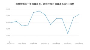 2022年7月,理想ONE销量为12607辆,同比增长42.89%,环比增长13.37%。2021年07月-2022年07月份,理想ONE销量为130101辆,同比增长106.09%。