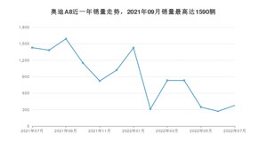 2022年7月,奥迪A8销量为377辆,同比下降73.62%,环比增长39.11%。2021年07月-2022年07月份,奥迪A8销量为11793辆,同比下降37.39%。