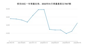 2022年7月,领克03销量为4521辆,同比下降19.09%,环比增长83.93%。2021年07月-2022年07月份,领克03销量为60496辆,同比下降26.02%。