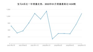 2022年7月,宝马4系销量为1329辆,同比增长71.93%,环比增长59.74%。2021年07月-2022年07月份,宝马4系销量为10238辆,同比增长30.5%。