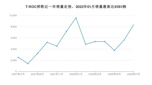 2022年7月,T-ROC探歌销量为8350辆,同比增长231.22%,环比增长48.89%。2021年07月-2022年07月份,T-ROC探歌销量为66849辆,同比下降38.87%。