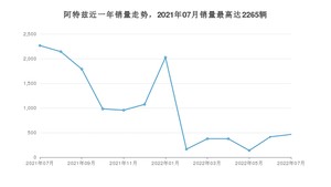 2022年7月,阿特兹销量为464辆,同比下降79.51%,环比增长12.35%。2021年07月-2022年07月份,阿特兹销量为13155辆,同比下降58.09%。