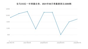 2022年7月,宝马iX3销量为1718辆,同比下降6.68%,环比增长14.84%。2021年07月-2022年07月份,宝马iX3销量为15427辆,同比增长60.03%。