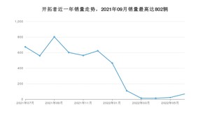 2022年7月,开拓者销量为68辆,同比下降89.9%,2021年07月-2022年07月份,开拓者销量为4509辆,同比下降42.99%。