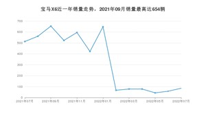 2022年7月,宝马X6销量为85辆,同比下降83.43%,环比增长46.55%。2021年07月-2022年07月份,宝马X6销量为4326辆,同比下降41.8%。