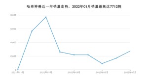 2022年7月,哈弗神兽销量为2745辆,环比增长61.66%。2021年07月-2022年07月份,哈弗神兽销量为25820辆,