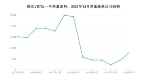 2022年7月,捷达VS7销量为1599辆,同比下降47%,环比增长85.93%。2021年07月-2022年07月份,捷达VS7销量为32779辆,同比下降21.08%。