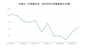 2022年7月,添越销量为68辆,同比下降46.46%,环比增长51.11%。2021年07月-2022年07月份,添越销量为841辆,同比下降54.93%。