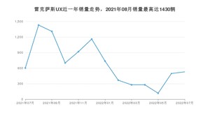 2022年7月,雷克萨斯UX销量为528辆,同比下降12.29%,环比增长6.45%。2021年07月-2022年07月份,雷克萨斯UX销量为8917辆,同比增长12.04%。