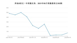 2022年7月,奔驰B级销量为71辆,同比下降85.27%,2021年07月-2022年07月份,奔驰B级销量为2626辆,同比下降74.86%。