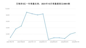 2022年7月,艾瑞泽5销量为2490辆,同比增长162.11%,环比增长26.08%。2021年07月-2022年07月份,艾瑞泽5销量为49782辆,同比增长639.15%。