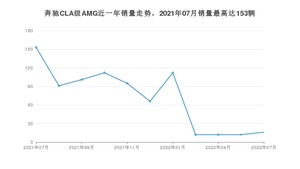 2022年7月,奔驰CLA级AMG销量为16辆,同比下降89.54%,2021年07月-2022年07月份,奔驰CLA级AMG销量为782辆,同比下降38.67%。