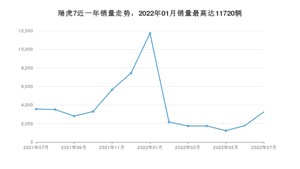 2022年7月,瑞虎7销量为3262辆,同比下降8.4%,环比增长83.26%。2021年07月-2022年07月份,瑞虎7销量为49875辆,同比增长6.98%。