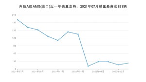 2022年7月,奔驰A级AMG(进口)销量为23辆,同比下降87.96%,2021年07月-2022年07月份,奔驰A级AMG(进口)销量为1128辆,同比下降55.66%。