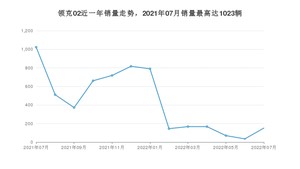 2022年7月,领克02销量为151辆,同比下降85.24%,环比增长331.43%。2021年07月-2022年07月份,领克02销量为5627辆,同比下降69.7%。