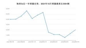 2022年7月,瑞虎5x销量为2021辆,同比下降49.34%,环比增长57.64%。2021年07月-2022年07月份,瑞虎5x销量为40047辆,同比下降28.68%。