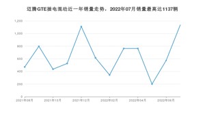 2022年7月,迈腾GTE插电混动销量为1137辆,环比增长98.08%。2021年07月-2022年07月份,迈腾GTE插电混动销量为7739辆,