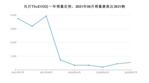 2022年7月,风行T5 EVO销量为535辆,同比下降85.7%,环比增长22.15%。2021年07月-2022年07月份,风行T5 EVO销量为13424辆,同比下降49.84%。