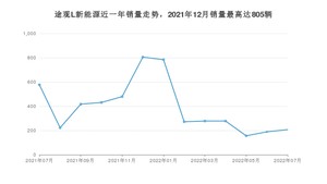 2022年7月,途观L新能源销量为207辆,同比下降64.12%,环比增长9.52%。2021年07月-2022年07月份,途观L新能源销量为5095辆,同比下降49.7%。