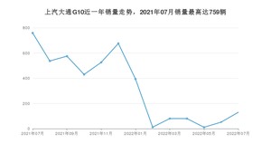 2022年7月,上汽大通G10销量为130辆,同比下降82.87%,环比增长150%。2021年07月-2022年07月份,上汽大通G10销量为4262辆,同比下降58.44%。
