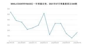 2022年7月,MINI COUNTRYMAN销量为167辆,同比下降69.07%,环比增长183.05%。2021年07月-2022年07月份,MINI COUNTRYMAN销量为3712辆,同比下降33.32%。