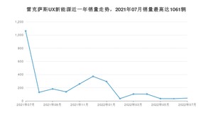 2022年7月,雷克萨斯品牌总体销量达到13971辆,其中雷克萨斯UX新能源销量达到42辆,占品牌总销量的0.3%。